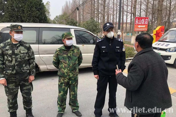 “我请求加入疫情防控第一线!”2020年2月2日,在加入余杭区仁和街道组织退役军人防疫志愿队后,工商管理系物流管理191班沈鲁顺主动请缨与街道工作人员、民警一起投身疫情防控工作。