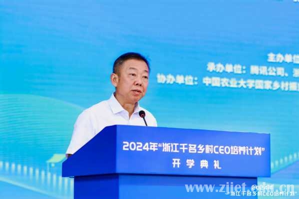 陈德泉在讲话中对浙江省农业农村厅、浙江省农学会、腾讯公司、浙江省乡村建设促进会等单位的信任和支持表示感谢,并简要介绍了学校的基本情况。他表示,学校一直高度重视乡村振兴人才培育,此次承办2024年“浙江千名乡村CEO培养计划”项目,既是积极响应“三支队伍”建设、以人才之力赋能乡村振兴的创新之举,也是学校义不容辞的使命担当。2023年,学校圆满完成了首批100名乡村CEO的培训任务,成效突出、反响良好。今年,学校将与农林大学紧密合作,力争培养出一批既擅长乡村经营与服务,又能引领乡亲迈向共同富裕的乡村振兴人才。