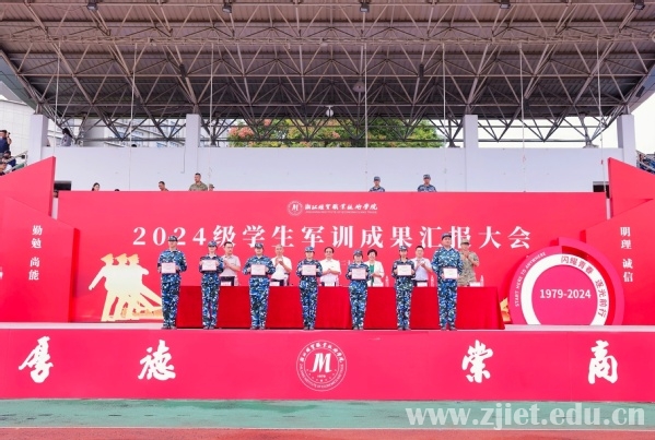 9月27日下午,我校2024级学生军训成果汇报大会在田径场举行。学校党委副书记许宝峰,党委委员、副校长蒋丽君、何学军,党委委员、纪委书记吴刚群,党委委员、组织部(人才办)部长(主任)、宣传统战部部长邱雷鸣,94973部队管理科国防动员参谋、军训团团长王云飞出席大会。全体中层干部、辅导员、新生班班主任和全体新生参加大会,大会由何学军主持。