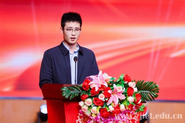 活动现场,往届国奖生代表、浙大城市学院滨江创新中心工程师、浙江机电职业技术大学优秀毕业生王悦冰作典型分享。